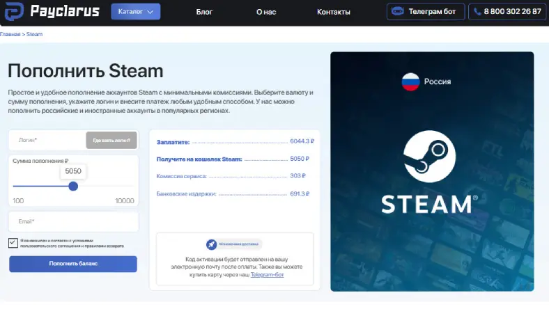 Разберемся, как в 2025 году можно пополнить баланс на площадке Steam напрямую с российской банковской карты. Проще всего это сделать в сервисе PayClarus․ Это легально и безопасно. Процесс пополнения занимает не более трех минут. Сумма пополнения может быть любой — от 100 рублей и выше, в зависимости от желания геймера.